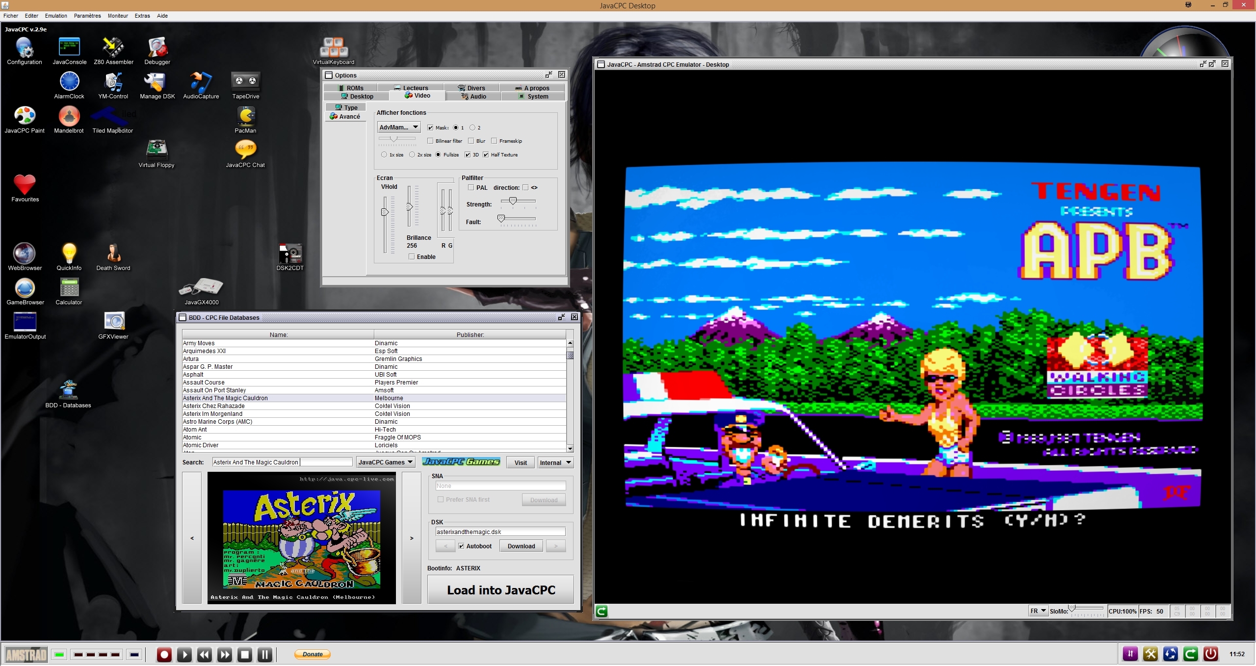 ...et surtout cette fameuse interface où vous avez un accès direct à plusieurs bases de données CPC (avec screenshots et différentes informations) avec prise en charge des jeux sur plusieurs disquettes (DSK) et les .SNA.
