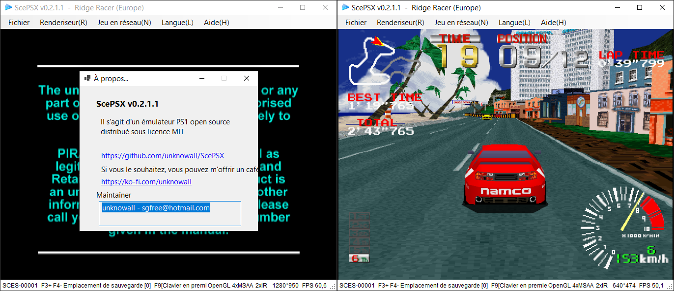 SCEPSX est un émulateur PlayStation 1 pour Windows (open source et écrit en C #). Le code est partiellement repris de ProjectPSX.