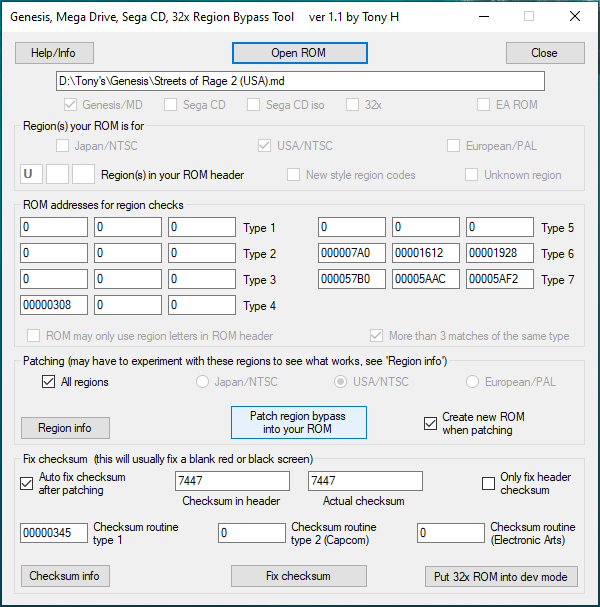 Un outil destiné avant tout aux roms SEGA. Il gère des choses comme le changement de région d'un jeu (US/EUR/JAP...), la création de patch ips et permet d'effectuer des corrections sur certaines roms.